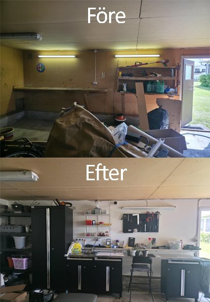 Bilderna till höger är hur garaget såg ut innan midsommar detta året och hur det ser ut nu.